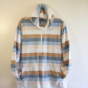 O'NEILL Women's Half Zip Polar Fleece Hoodie Blue Stripe Size Large EUC Warm