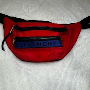 Bold red belt bag with black accents. Features Givenchy branding. Ideal for style and convenience. Feel free to send a reasonable offer! thave never used unassuming into my items but I'm going to now. coastal, cowgirl, feminine 100% Authentic - 100% Positive Feedback -