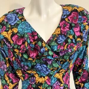 Vintage Sarah Taylor Floral Dress Size 6 80/90s Puff Sleeves