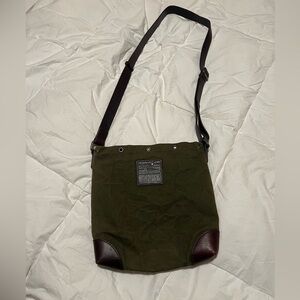 TREASURE & BOND Olive Green Canvas/ Brown Leather Messenger Crossbody Bag