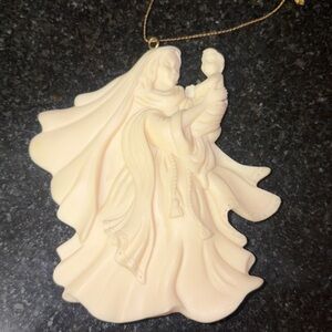 This finely detailed, inspirational ornament brings the spirit of Christmas to your tree. Of Ivory-hued cast resin with an heirloom look.