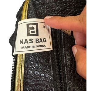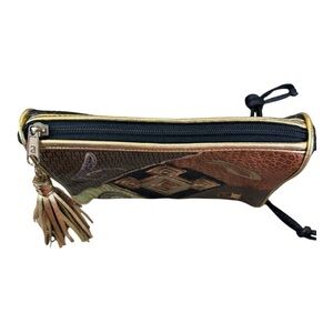 Meet Kai — a vintage 1980s Alentino NAS crossbody bag made in Korea, showcasing bold metallic patchwork panels, rich textured faux leathers, and a geometric abstract design. This collectible retro statement piece features a swingy tassel zipper pull, gold piping, and an adjustable grommet strap — perfect for lovers of boho patchwork, metallic glam, and retro 80s handbags.