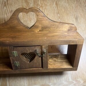 Vintage Wood Wall Shelf Curio Heart Cut-Out Farmhouse Pegs COTTAGECORE