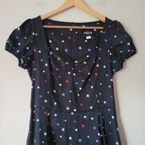 Collectif London Retro Vintage Pinup Mimi Rainbow Star Constellation Dress Sz L