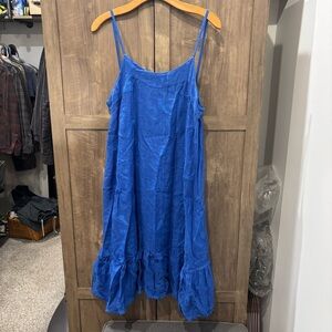 Pure Lino Linen Italy Dress Spaghetti straps blue embroidered