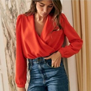 LIKE NEW Sézane Abélia Blouse in Rogue Orange | Long Sleeve Women’s | FR 36 US 4