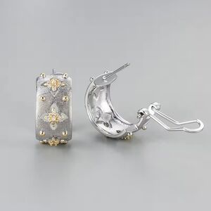 Vintage Seiko Brushed Craft Plated $925 Silver Luxury Four Leaf Clover Diamond Earrings Earrings Fashion Women