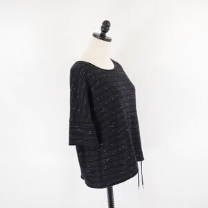 Liz Claiborne Weekend Large Black Knit Top Scoop Neck Cotton Short Sleeve