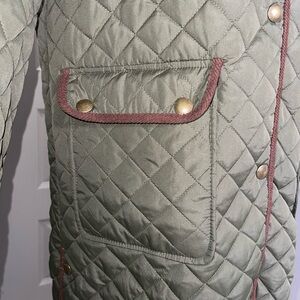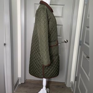 Ralph Lauren Olive Quilted Puffer with Brown Trim