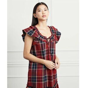 Hill House Womens Cordelia Mini Nap Dress XS Red Tartan Plaid Cotton Ruffles - new with tag