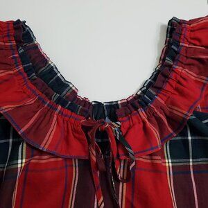 Hill House Womens Cordelia Mini Nap Dress XS Red Tartan Plaid Cotton Ruffles