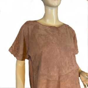 VINTAGE 1970'S ANN TAYLOR BROWN GENUINE SUEDE SHORT SLEEVE SHIFT DRESS (6)