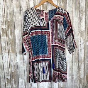 Umgee Boho Retro Print Tie Neck Tunic/Dress