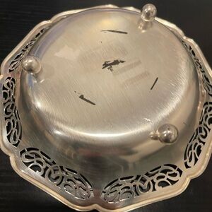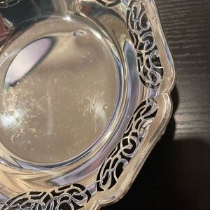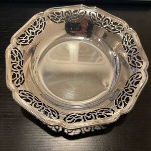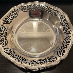 Enhance your dining experience with this elegant silver decorative bowl. Perfect for serving or as a centerpiece, its intricate design adds a touch of sophistication to any table setting. It’s 7 inch long. Made in Germany
