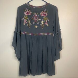 Umgee Gray Embroidered Bohemian Top