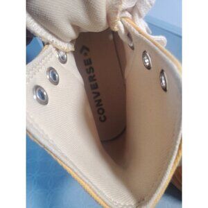 The Converse Run Star Hike Hi Women's 8 White Yellow Gum Athletic Shoes Sneakers are stylish and functional sneakers designed for athletic activities, particularly hiking. With a high top shoe shaft style and a vibrant yellow color, these Converse shoes feature a unique star theme and are perfect for women looking for both comfort and style. The size 8 US shoe size and 39 EU shoe size make them a versatile option for various activities, while the rubber sole and cushioned insole provide support and stability during workouts or hikes.