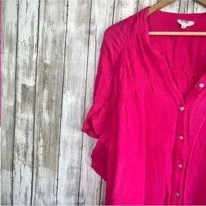 Brighten your wardrobe with this vibrant pink button-up top. Perfect for casual outings or a day at the office.