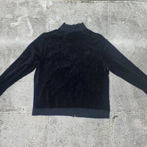 Vintage Hot Cotton Men Jacket Black Velvet Long Sleeve Velour Zip Up Size L