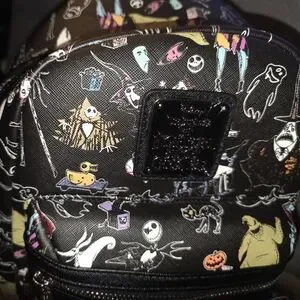 Stylish Loungefly backpack and wallet featuring The Nightmare Before Christmas design. Perfect for fans of the movie.