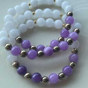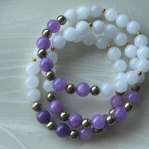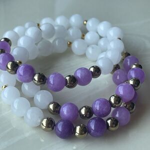 Lepidolite pyrite white jade NEW stretch bracelet ONE meditation yoga
