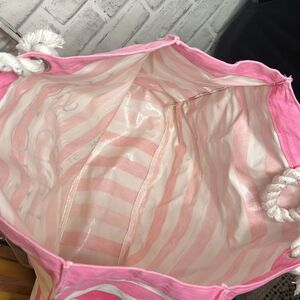 Victoria’s Secret Pink & White Striped Tote Bag Rope Handles Beach Pool