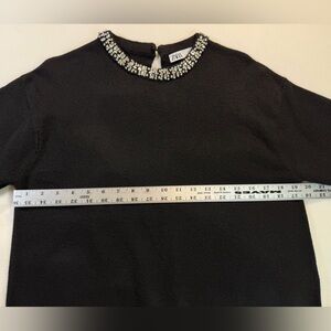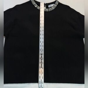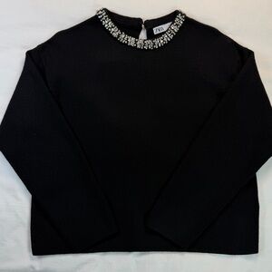 Zara Jewel Neck Black Knit Sweater Small EUC
