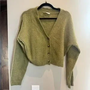 Double Zero Cropped Cardigan Olive Green Button Front Preppy Old Money Style S