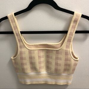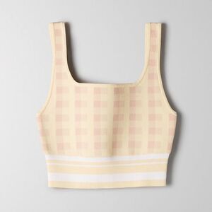 Excellent condition ✨ No visible flaw. Very unique light yellow, pink and beige pattern on a classic Aritzia tank. This fabric makes all bodies look phenomenal. Size medium. From Aritzia’s website : Nice form This cropped, knit tank top is finished with a textured ottoman stitch. Babaton’s signature sculpt-knit fabric smooths and contours your shape. Materials & Care Content: 98% nylon, 2% spandex Care: Hand wash Imported Tags : clueless academia pastel easter summer spring plaid check checkered print cottage cottagecore prairie prairiecore
