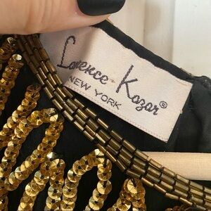 VINTAGE 80s 90s LAURENCE KAZAR 100% silk gold black sequin dress