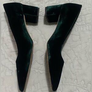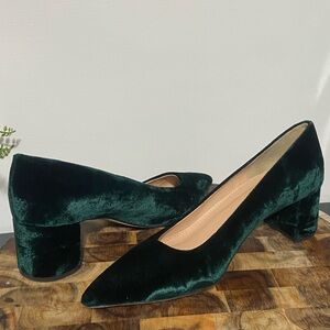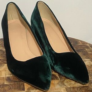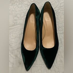 Chic J. Crew heels in luxurious dark green velvet. Perfect for elevating any look