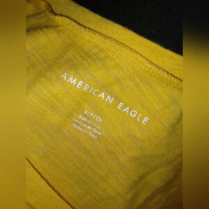 American Eagle Mustard Yellow V Neck Short Sleeve Tee-Shirt
