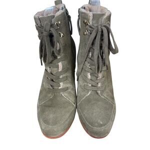 Violet & Red Suede Olive Green Jarvis Sherpa Lined Chunky Heel Booties Boots 7 M