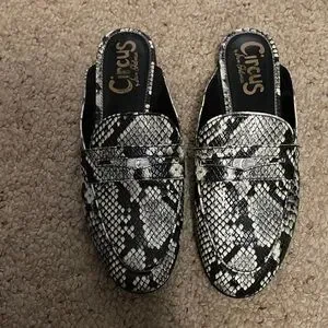 Stylish snake print loafers. Size 7.5. Excellent condition. Comfortable slip-on design. Perfect for versatile wear.