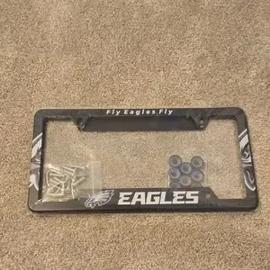 Show your team spirit with this Philadelphia Eagles license plate frame. Features 'Fly Eagles Fly' and team logo. Perfect for any Eagles fan.