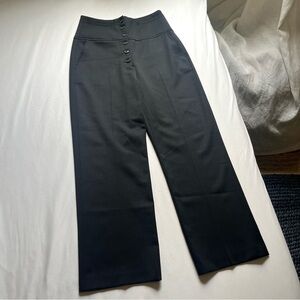 G. GOOP black high rise exposed button fly straight wide leg trousers