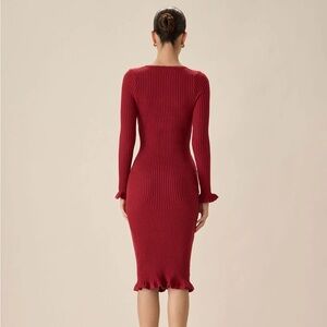 RIHOAS Red Bodycon Bell Sleeve Sweater Dress S
