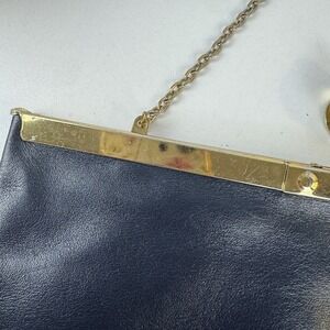 1960s minimalist glam navy leather clutch Etra gold frame evening bag