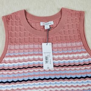 Elevate your style with this chic sleeveless knit top. Featuring a blend of pink, blue and white stripes, it's perfect for any casual outing. Enjoy comfort and fashion in one piece.