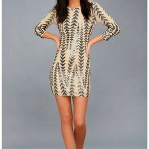 Womens Lulus Stunning Nude & Gunmetal Sequin BodyCon Mini Dress - Sz S