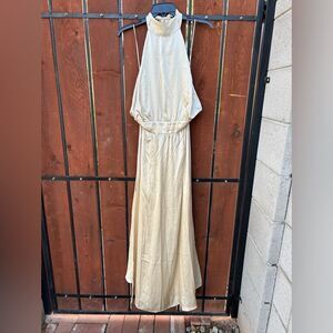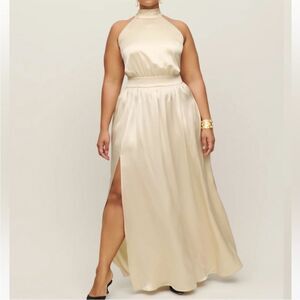 NWT Reformation Ivory Alani Silk Side Slit Backless Halter Maxi Dress size 14