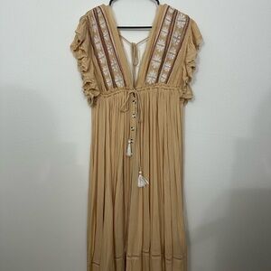 Free people will wait for you boho peach Midi Dress embroidery detail tassels