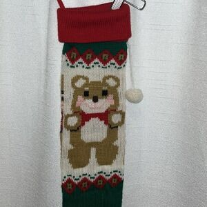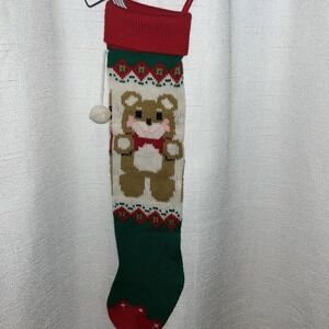 Vintage Santa's Best Teddy Bear Knit Long Stocking 23" Christmas Country Classic