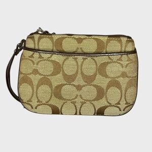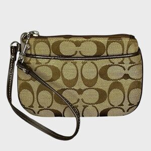 SEO Keywords: Coach wristlet, signature canvas wristlet, designer small bag, Coach mini pouch, Coach accessories, Coach purple interior, Coach zip clutch, Y2K wristlet, Coach monogram