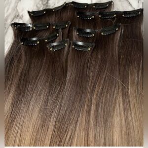 22 Inch Ombre Style Clip in Hair Extensions Brown to Light Blonde in Straight hair, Change your hair style in Minutes, With these Easy to Wear Clip In Hair extensions, made from Vegan high Quality Fiber, 100 % Cruelty Free