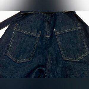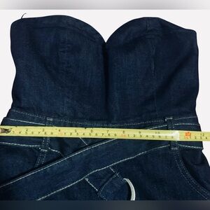 Zara Dark Women Blue Wide Leg Denim Strapless Jumpsuit, Small 99% Cotton.