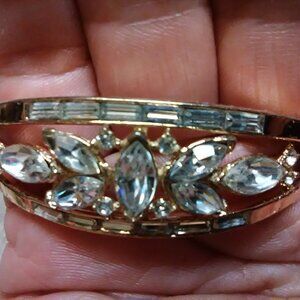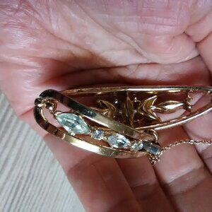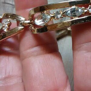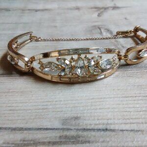 Trifari bracelet - rhinestone & gold tone - pat pend - chain intact