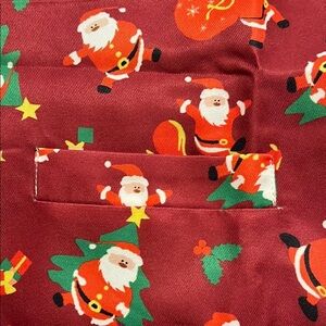 Brighten up your wardrobe with this cheerful red vest featuring playful Santa Claus prints and a bow tie