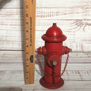Charming red fire hydrant piggy bank decor piece. Adds a playful touch to your space. Ideal for unique home accents. Great gift for any firefighter family or friend. New with tag. Will ship carefully in box.