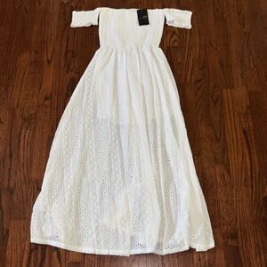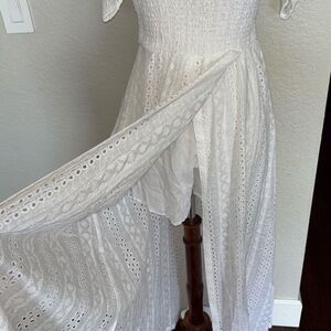 NWT J O A Just One Answer white eyelet ruched maxi dress XS built in short