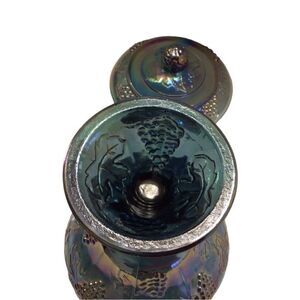Vintage Indiana Glass Harvest Grape Blue Carnival Compote W/Lid Vintage
